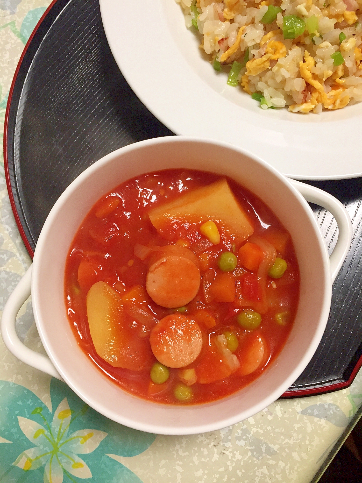 トマト缶だけで濃厚 じゃが芋とウィンナーのスープ レシピ 作り方 By まめもにお 楽天レシピ