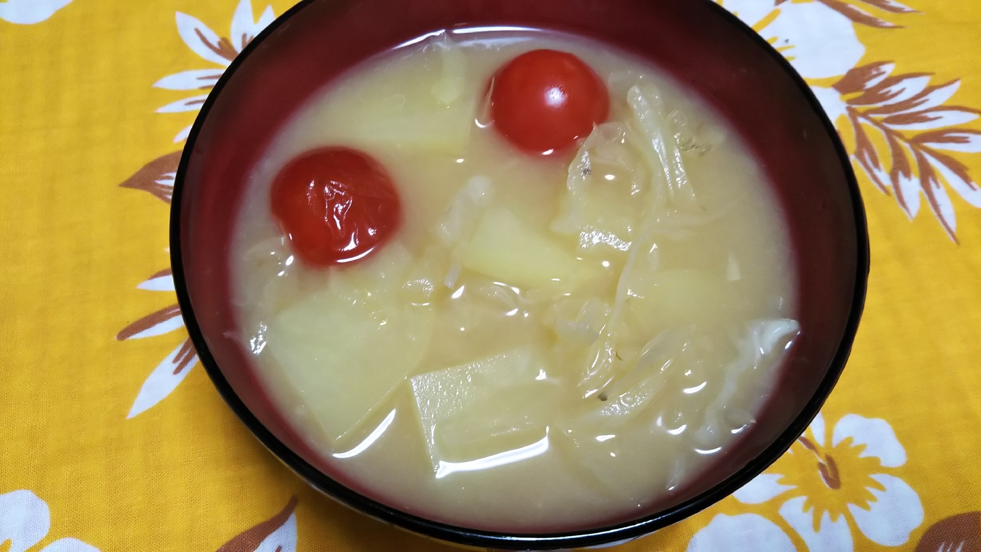 じゃがいもとキャベツとミニトマトの味噌汁 レシピ 作り方 By ミニー7015 楽天レシピ