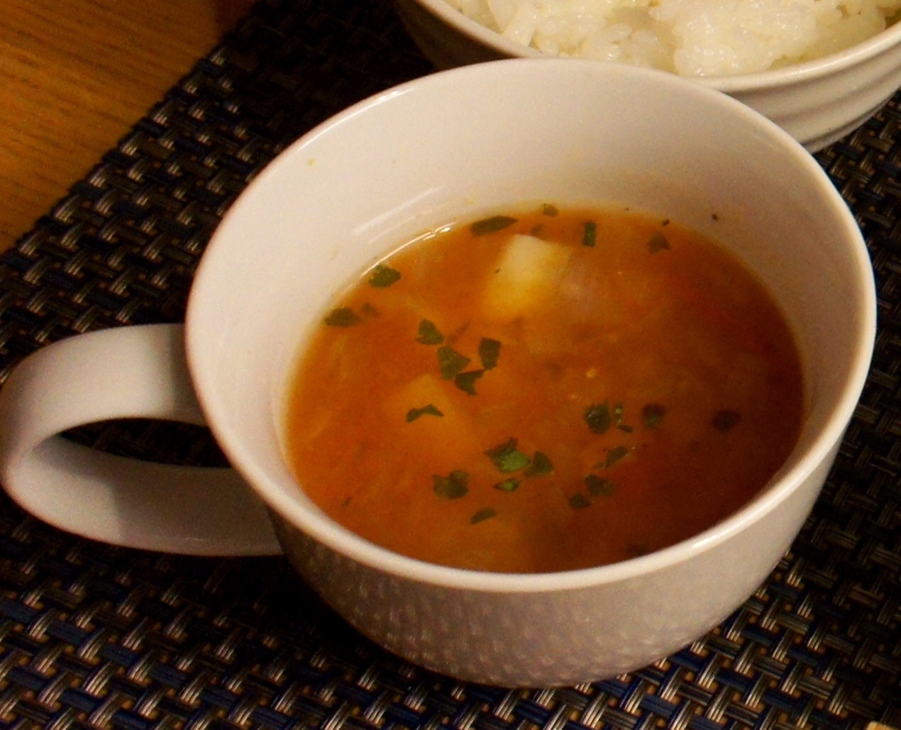 ラザニア ボロネーゼを使った 野菜トマトスープ 出稼ぎ父ちゃんの一人飯